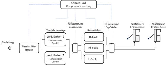 Jetzt anfragenDie Anlagen- und Kompressorsteuerung der Tankstelle ist ein wichtiger Bestandteil für den sicheren und zuverlässigen Betrieb der Anlage. Die Steuerungseinheit sorgt dafür, dass die Kompressoren automatisch ein- und ausgeschaltet werden, je nach Bedarf an Druck und Gasvolumen. Sie gewährleistet außerdem eine konstante Gasqualität und -menge für eine effiziente und sichere Betankung.